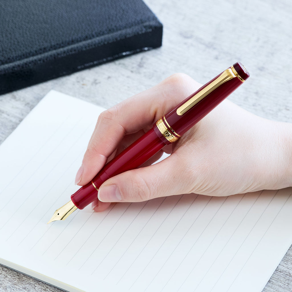 キャップ・胴軸・天冠・尾栓は全て異なった日本古来の「3色の赤」を使用し、今までにない独特なグラデーションの美しさがある万年筆です。