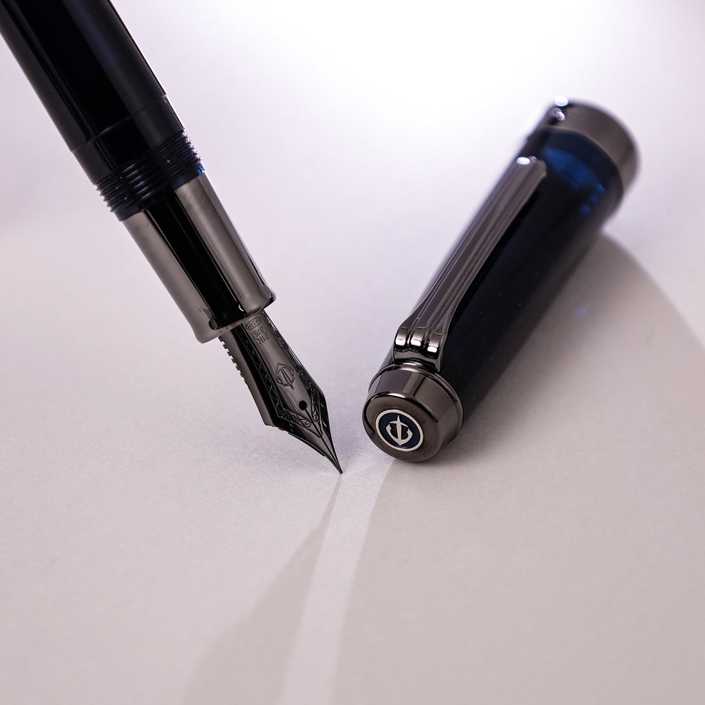 万年筆の軸が、深まる思考と一体となり「夜明け」をもたらすように、コーポレートカラーの「SAILOR BLUE 黎明」を深く濁りの無いクリア樹脂で表現しました。